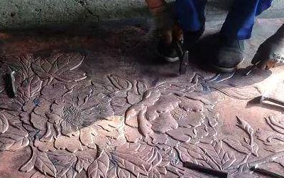 鍛造(咱們這兒特指鍛銅)——嘿!這可是體力活加技術活!拿銅板當畫布,錘子當畫筆,全靠師傅一錘子一錘子敲打出來的!尤其是浮雕、壁畫這類講究深淺效果的,這手藝絕了!純手工的精細活兒。